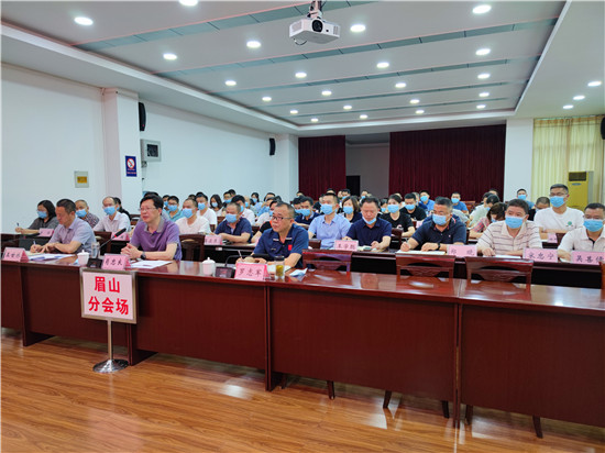 市市场监管局班子成员,副县级及以上领导干部,机关各科室、园区分局、下属事业单位主要负责人在主会场参加会议;各县(区)分管县(区)长,各县(区)市场监管局主要负责人在分会场参加会议。(眉山市市场监管局供图)