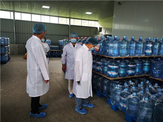 调研组一行在企业负责人的陪同下,实地参观了矿泉水取水点、生产车间和成品库房,对企业质量控制体系、产品生产流程、卫生规范、出厂检验等业务进行了全面了解。