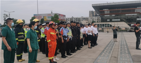 四川新闻网消息 2021年6月是全国第20个“安全生产月”,今年活动的主题是:“落实安全责任,推动安全发展”。为提高公交员工在突发事件中的应急处置能力,最大限度地预防和减少各类公共突发事件造成的伤害,今(18)日,由组织眉山市交通运输局、眉山市国资委主办,眉山市展通公交客运有限公司承办的2021年交通事故、消防及反恐防暴综合应急演练在眉山东站广场举行。眉山市公交公司50余人参加了演练活动。此次演练主要设置两个科目,一是交通事故、消防应急演练;二是擒敌拳、抗击打表演和反恐防暴应急演练。