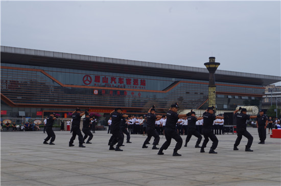 擒敌拳、抗击打表演和反恐防暴应急演练现场,通过特警擒敌拳表演、抗击打表演和反恐防暴等演练等形式,展现了每一名队员的抗击打能力,在处置突发事件时更能适应高强度的对抗和耐受重击,每一名队员始终坚持“流血流汗不流泪、掉皮掉肉不掉队”的信念,通过刻苦训练,维护东站秩序,保障旅客生命财产安全。