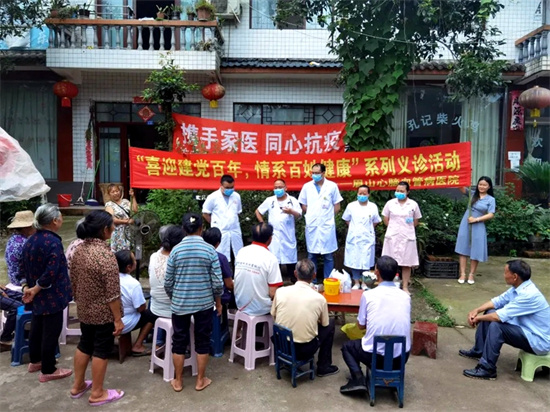 5月28日,眉山心脑血管病医院联合眉山市益家亲社会工作服务中心、东坡区富牛镇曾庙村村委会开展了“喜迎建党百年,情系百姓健康”巡回义诊服务。