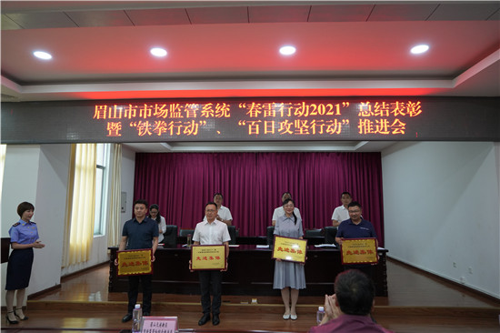 会议公布了“春雷行动2021”暨冷链物流疫情防控执法行动十大典型案件,通报表扬了“春雷行动2021”先进集体、先进个人,并为其颁奖,仁寿县市场监管局、洪雅县市场监管局分别作了交流发言。会议总结了2020年全市市场监管系统行政执法工作情况,并就2021年行政执法重点工作、2021民生领域案件查办“铁拳”行动、“除隐患、防风险、迎大庆”百日攻坚行动进行了详细安排部署。
