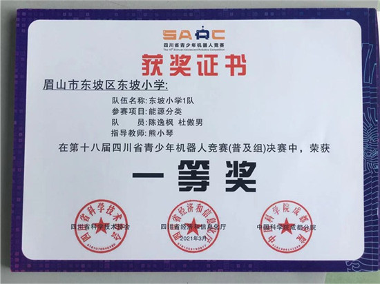 在2021年3月,由四川省教育厅,四川省科协等八部委举办的“蜀少年”四川省青少年文化艺术展演中,