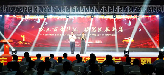 四川新闻网消息 6月25日下午,眉山发展控股集团有限公司庆祝中国共产党成立100周年文艺演出暨“两优一先”表彰大会在眉山岷江东湖饭店举行。