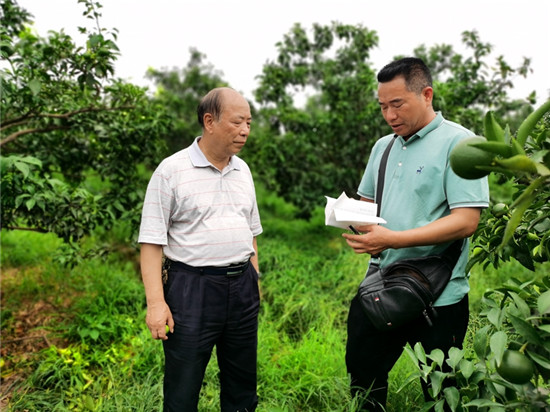 四川省农科院原副院长、原九三学社中央委员、四川省委副主委刘建军带领柑橘领域农技专家一行4人,顶着烈日深入田间果园,为果农管理爱媛等柑橘遇到的问题排忧解难,现场生动形象地传授了柑橘种植田间管理、修枝梳果、病虫害防治、土壤和施肥等技术,受到当地群众一致好评 。果农希望这样接地气的专家多到现场指导。