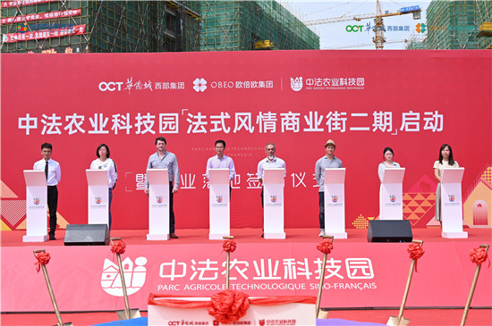 天府新区眉山管委会相关负责人、眉山中法农业科技园开发有限公司副总经理(主持工作)胡晓波等嘉宾共同参与见证了中法农业科技园【法式风情商业街二期】启幕及产业落地签约仪式。