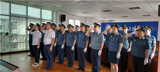 上午9时,交通运输综合行政执法人员在局党委委员、副局长刘康旭、陈蓉同志的带领下,整齐列队,面向国旗和党旗进行了庄严的集体宣誓,表达对党忠诚,执法为民,严守纪律,履职尽责,勇于担当、清正廉洁,努力为建设人民满意交通而努力奋斗!