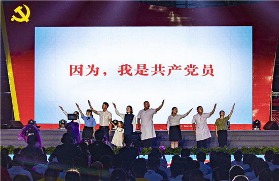 “我们的节目是根据发生在我们身边的真人真事来创作的,我们在演绎里面的人物时总是会被他们的故事感动。对我来说,这不仅仅是参与演出,而且是从中向他们学习。我会向榜样看齐,争做新时代合格的共产党人。”情景朗诵《因为,我是共产党员》演员张薇表示。(洪雅县委宣传部供图)