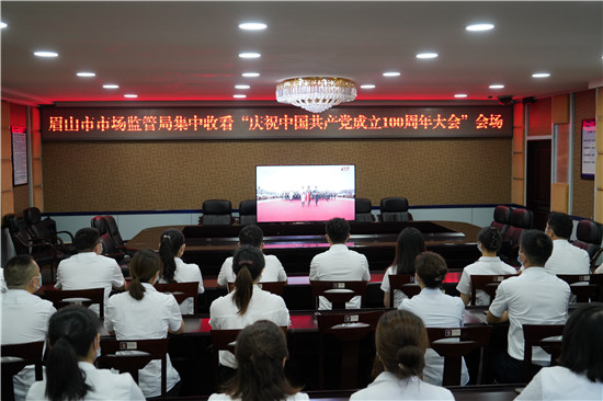 四川新闻网消息(史鉴轩 记者 李田)7月1日上午,庆祝中国共产党成立100周年大会在北京天安门广场隆重举行。眉山市市场监管局周密组织机关各科室、园区分局及下属事业单位全体干部职工集中收看庆祝中国共产党成立100周年大会的现场直播。