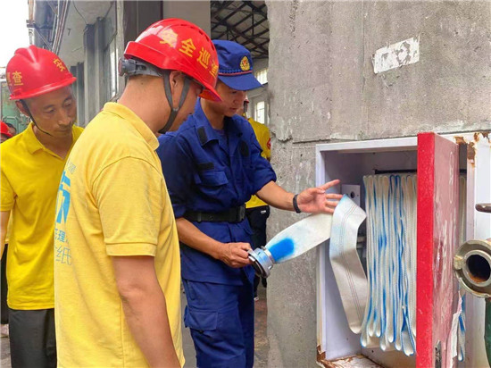 消防员首先跟随消防安全责任人现场观看了园区内装备器材系统运行情况,就地取材讲解了室内消火栓的使用、灭火器材的正确使用及对器材性能的解说,对园区企业人员如何自查自纠消防安全隐患进行了培训,同时结合培训内容组织参会人员开展应急疏散灭火演练训练。