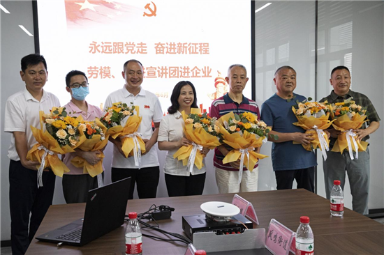 四川新闻网消息 “七一”前夕 省市劳动模范代表及来自彭山区部分企业职工代表60余人走进四川彭山经开区金高丽新材料有限公司。开展“永远跟党走,奋进新征程”劳模、先进宣讲活动。