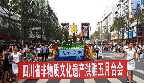 四川新闻网消息 “每逢(农历)五月二十七日,商贾辐辏,货物云集自一日致十日方罢”。洪雅素有“中国民间台会艺术之乡”的美称,传统文化奇葩自唐朝至今常开不败,各乡镇都有庙会,会期万众齐集。而每年农历5月27日前后,该县都会举办盛大的台会巡游活动!五月台会每场的表演内容并不是凭空编造的,而是根据经典的故事或是结合洪雅本地元素改编而来,一场台会就是一个引人入胜的故事。