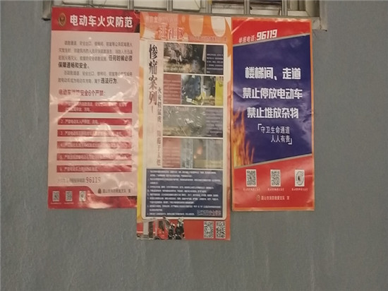 通过张贴消防宣传海报,时刻提示单位员工、居民群众严禁在疏散通道和安全出口堆放杂物,严禁将电动自行车停放在楼梯间进行充电、严禁圈占和堵塞消防车通道等基本常识,让辖区群众在潜移默化中认识消防安全基本常识的重要性,不仅提高了辖区群众的消防安全意识和自防自救能力,更使人民群众深刻地认识到了日常防火的重要性,达到了“教育一人,带动一家,辐射全社会”的目的。(东坡区消防救援大队供稿/供图)