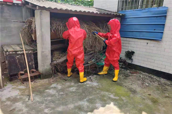四川新闻网消息(高凯旭 记者 李田)2021年7月4日9时20分接到指挥中心命令,仁寿县大化镇一居民家中有马蜂窝。接到命令后,仁寿县消防救援大队书院街专职消防站立即派出一车7人前往处置;到达现场后,经过勘察,发现马蜂窝藏在居民家中的草垛中,旁边还不时有马蜂飞舞盘绕,场面十分吓人。