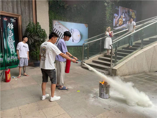培训过程中,大队宣传人员紧紧结合娱乐场所人员流动量大、致灾因素多的特点,用通俗易懂的语言深入浅出地向单位从业人员详细讲解了火灾的危害、火灾的预防及灭火器的使用方法和维修保养。同时着重讲解了一旦发生火灾后如何正确报警、如何利用现有物品扑救初期火灾、如何组织人员疏散、如何逃生自救等消防安全常识。培训结束后,大队宣传人员组织场所员工开展了油盆灭火及疏散演练。