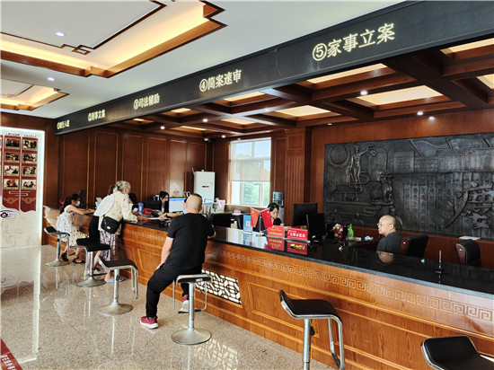 县人民法院立案庭法官助理胡婷介绍:“为给当事人提供全方位、多层次的诉讼服务,洪雅法院立案庭围绕‘党员多服务,群众少跑路’,提出了‘五个马上办’的诉讼服务理念。对当事人移交的诉讼材料马上登记,及时移交;运用微法院、跨域立案,小程序发挥大作用,让当事人足不出户,完成立案登记;银行入驻诉讼服务中心,免去当事人为了缴费在法院与银行之间来回奔波;设置简案团队,保证简单案件马上办理;设置信访接待窗口,保证有访必接,化解多起重大信访案件。”