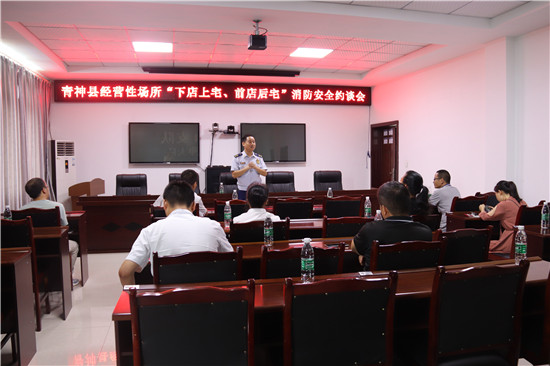 四川新闻网消息(孙苏新 记者 李田)7月14日,青神县消防救援大队组织物业公司及经营性场所开展“上店下宅、前店后宅”消防安全约谈会。