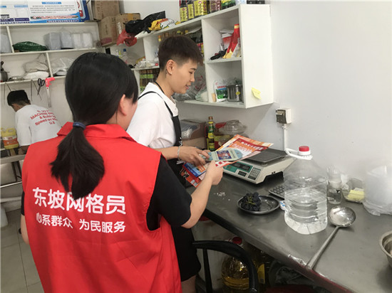 四川新闻网消息 为切实做好消防宣传工作,进一步提高全民消防安全意识,巩固社会化消防宣传效果,全面构筑消防安全“防火墙”。7月14日,东坡区消防救援大队发动社区网格员走上街头进入沿街小商铺开展“入户进店”宣传普及消防知识。网格员走进沿街小商铺进行上门宣传。告知商户在使用电瓶车时不要乱拉电线,充电时间不宜过长等要注意的相关事项。