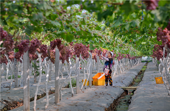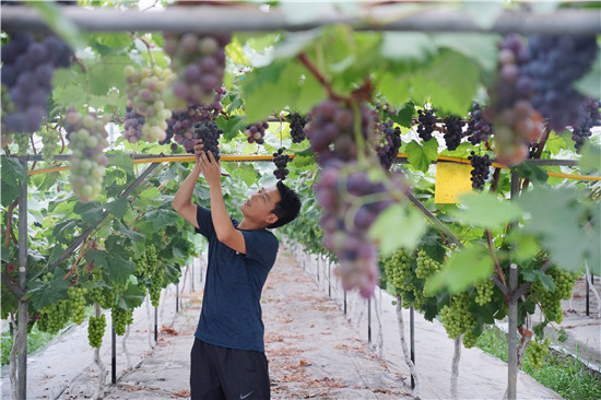“党支部形成了一套规章制度,统一用肥、用药,统一果品标准。”张雄说,“我们对葡萄实行‘计划生育’,亩产量控制在2500斤到3000斤,单串葡萄重量不超1.5斤,颗数在80颗至100颗之间,严格把关品质。”