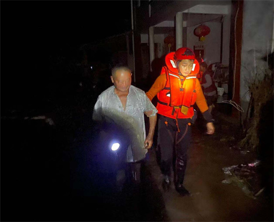 救援人员怕老人家行动不便,准备背起老人转移到安全地方,老人家却心疼消防指战员,坚持要自己走。在救援人员的搀扶保护下,晚上10点55分两位老人成功转移到安全地点,随后消防救援人员将其转交至亲属家中暂居。(洪雅县消防救援大队供图)