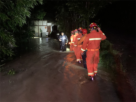21时45分,成功疏散5名群众并转交给当地政府工作人员,无人员受伤。(洪雅县消防救援大队供图)