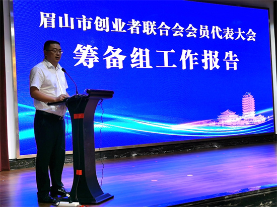 眉山市人力资源和社会保障局党组成员、市就业局局长向阳在创业者联合会会员代表大会上发表讲话。