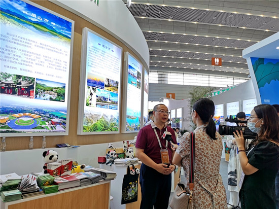 眉山市充分借助此次博览会,在四川馆设置了眉山文旅展位,大力宣传“安逸走四川·好耍在眉山”文旅品牌形象。现场通过眉山文旅专题推介、播放眉山文旅宣传片、网络直播宣推、现场派发宣传资料、公众咨询、文创产品展示展销等形式,向西安市民游客宣传推介了眉山在川内独特的区位优势,良好的自然生态环境,四季宜游宜居的城市魅力,并向西安旅行商、媒体、市民游客们推介了“天府旅游名县”洪雅县,正在争创“天府旅游名县”的东坡区、争创“天府旅游名县候选县”的青神县等县(区)的文旅资源。