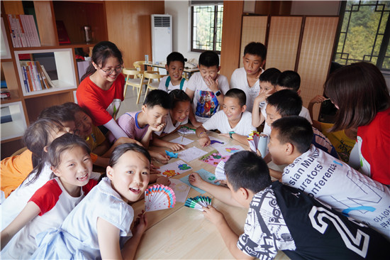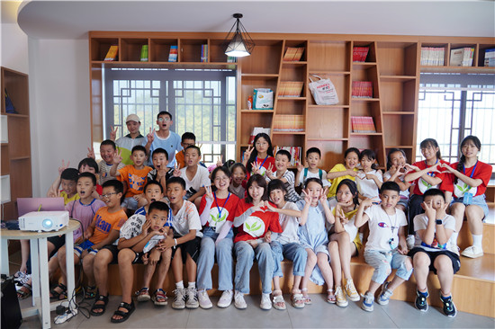 四川新闻网消息(翁光建 曾雨涵 记者 李田)“五星红旗迎风飘扬,胜利歌声多么响亮!”大门里歌声悠扬飘荡,随后又是孩子们银铃般的笑声.7月22日,在眉山市彭山区观音街道毛店社区二楼共享空间,来自四川大学锦江学院的17名大学生志愿者,正在开展“关爱儿童”为主题的暑期“三下乡”支教活动,为乡村孩子们进行文化、科技、音乐、体育等知识的辅导,丰富孩子们的暑期生活。