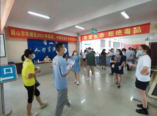 四川新闻网消息(李麟 记者 李田)2021年7月23日,眉山市东坡区高校、中职专场招聘会在眉山市人力资源市场(二部)举办。