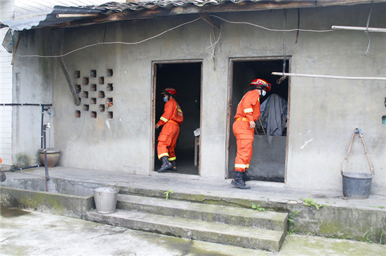 此次演练假定2021年7月30日上午9时30分左右,汪洋镇上游村发生5.0级“地震”,导致房屋倒塌,有人员被埋压。汪洋政府接到“灾情”报告后,立即启动地质灾害救援应急预案,集结政府应急办人员、汪洋专职消防救援站指战员共5车40人。9时50分,全体人员到达上游村,经指挥员现场询问和勘查后,了解到有一名群众被埋压。确定被埋地点和勘察现场情况后,指挥员立即布置救援方案;经过30分钟的紧张救援,被埋压人员被成功救出并送上救护车。