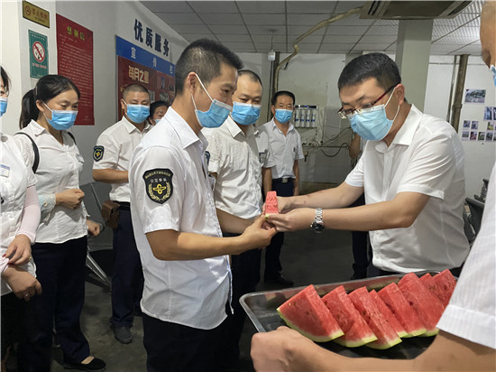 慰问期间,公司领导班子分赴各公交场站,为坚守在一线的员工送去了5000余斤西瓜,让坚守在生产一线的员工感受到“夏日清凉”和公司领导的浓浓关怀之情。当前正值汛期和夏季高温天气,同时也是疫情防控的关键时期,公司安全生产和防疫形势严峻。在保障市民群众安全出行的同时,做好个人防护和防暑降温工作同样重要。