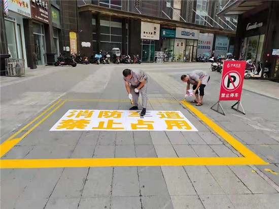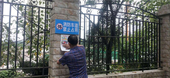 此次宣传活动,大队宣教人员先后深入山水四季城、依云官邸、雅康、禾森、金马、观澜城邦等小区,在居民楼出入口、楼梯口、小区主要通道等醒目地点张贴标有“消防通道、禁止占用”字样的宣传彩图,为过往居民群众发放消防安全知识宣传单。让辖区居民在潜移默化中记住消防车通道不可占用,真正让大家成为消防“明白人”,养成良好的消防习惯。每到一个小区大队宣教人员都督促小区物业管理单位划设消防车通道标志标线,设置警示牌;并要求其加强日常管理,定期维护确保鲜明醒目,同时加大对居民宣传教育和提醒,共同维护消防车通道畅通,确保小区消防安全稳定。