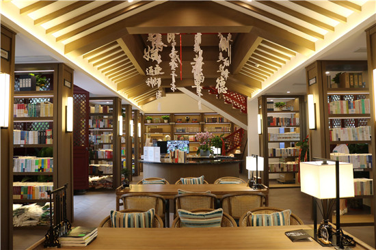 据了解,知行·悦读坊湿地公园人文书店位于东坡城市湿地公园一期南门入口处,占地1400平方米,仿古建筑风格,使之与周围的绿树、拱桥相得益彰。