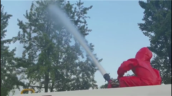 接到报警后,洪雅县消防救援大队派出一车5人迅速到场处置。赶到现场。消防员先将周围居民疏散,并对加油站附近的行人和车辆采取临时管制措施,防止处置过程中,马蜂受到惊吓而出现蜇伤人的情况。紧接着,消防队员穿好防蜂服,铺设好水带,手持水枪,瞄准这颗直径半米的马蜂窝,在猛烈的冲击之下,马蜂窝不断碎成渣掉下,不到20秒就将蜂窝从树上彻底打落。