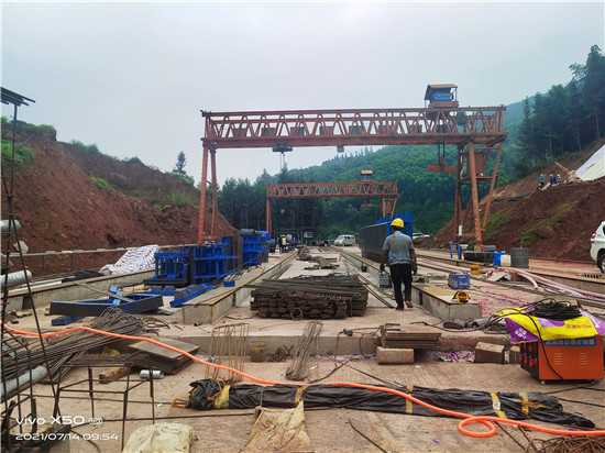 8月初的瓦屋山快速通道1号梁场和K1段施工现场,记者看到工人们正在进行钢筋制作以及养护管道和抗滑桩的施工。与此同时,工程组工作人员会同项目监理和安监人员,正在对梁板钢筋制作工艺质量和抗滑桩安全施工进行检查,并对现场施工负责人就施工安全和质量作警示提醒。