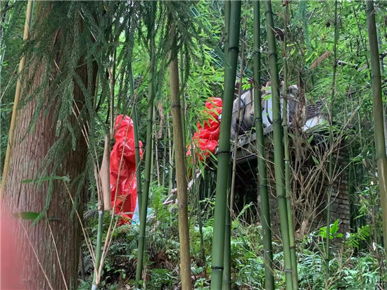 15时17分,消防队员赶到现场。发现在竹林变压器下方有一颗马蜂窝,还有不计其数的马蜂裹成一团。在对现场进行观察了解后,现场指挥员告知周围房间的人们一定要关好门窗,防止在行动中受到马蜂的攻击造成意外伤害,随即展开清除工作。