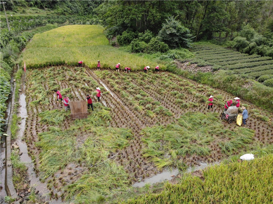 不到2个小时,整块稻田就已收割完毕,志愿者们把装好的稻谷集中装车,随后大家又在田间捡起遗落的谷穗,保证颗粒归仓。“我觉得这是一件很有意义的事情,促进了我们的邻里关系和谐。”农村党员志愿者卿润莲对记者说。