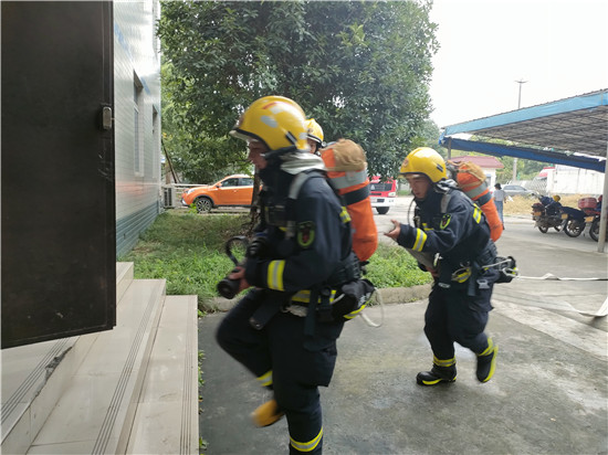 通过开展消防演练,立足实战,进一步提升青神县消防救援大队针对大型厂(库)房火灾事故的应急处置能力。(青神县消防救援大队供图)