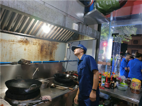 在检查过程中,检查组先后到姐妹夜宵、兵哥哥烧烤店、夜逍遥烧烤店等场所开展消防安全检查。每到一处,检查组都详细检查了安全通道是否畅通、应急照明灯和安全疏散指示标志是否保持完好有效、是否存在违章用火用电、消防设施运行是否正常;消防安全制度是否按要求落实,灭火和应急疏散预案是否制定;防火检查、巡查记录是否完善齐全。针对检查中发现的安全隐患,检查组当即要求现场负责人对其进行整改,同时要求做好日常消防安全巡查,切实提高员工的消防安全意识,坚决杜绝火灾事故的发生。