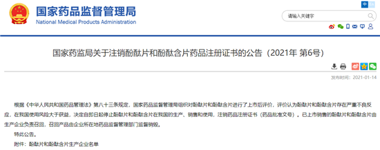 经查,该药房在2020年9月27日从眉山圣丹药业有限公司购进酚酞片(规格100mg*100片,生产厂家:山西亨瑞达制药有限公司,批号:200503,生产日期:2020年05月04日,国药准字:H20083778)3瓶。2021年1月14日,国家药监局官网发布《关于注销酚酞片和酚酞含片药品注册证书的公告(2021年 第6号)》后,当事人仍将该药品分别于2021年6月18日和2021年6月19日进行了销售。