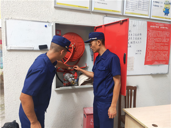 熟悉过程中,队员们对学校消防安全通道位置、消火栓位置、安全疏散通道、安全指示标志、室内消火栓、灭火器数量和位置等情况以边看边记的方式进行了熟悉了解。实地测试了室内消火栓是否能够正常使用。同时,结合灭火救援预案,对车辆停靠、水源使用、进攻路线、水枪阵地设置、个人防护等作战环节进行了全面熟悉,确保了灭火救援预案的准确性与针对性。同时值班班长要求学校负责人明确职责,定期对消防设施进行维护保养,确保发生火灾时能第一时间保护师生生命财产安全。