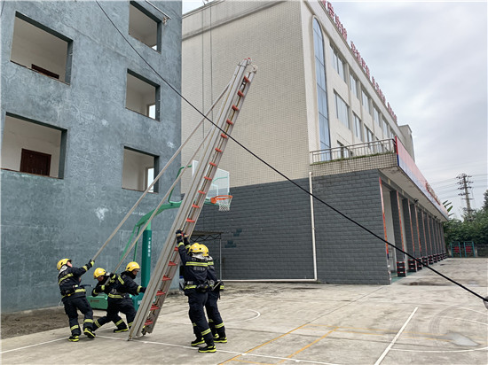 四川新闻网消息(余思潼 记者 李田)为进一步加强队伍灭火救援攻坚能力,提高专职队员业务水平,夯实队伍实战基础,稳步推进夏季练兵工作,近日,青神县消防救援大队组织专职队员开展15米金属拉梯操训练。