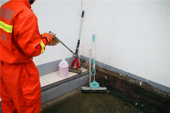 到达现场后,经过指战员观察,发现蛇蜷缩在墙角,指战员顺势拿出捕蛇神器,将毒蛇抓获并装进蛇带。