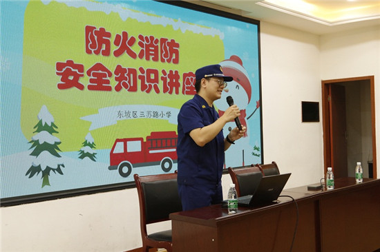 四川新闻网消息 为推进消防安全宣传“五进”工作,激发广大群众关注消防安全、参与消防工作的主动性和积极性。9月8日下午,东坡区消防救援大队走进东坡区三苏路小学开展消防安全知识宣传讲座。