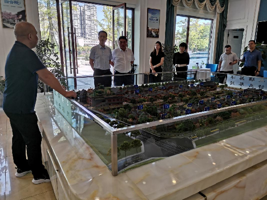 在东坡印象水街和金府穿越城商业水街,考察组边走边看,边听取介绍边互动交流,听取了水街规划布局理念、市场定位研判等方面情况介绍,并围绕基础设施建设、商圈业态构成、经典场景打造等方面情况进行了探讨交流。