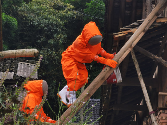 16时45分,现场处置完毕,确保周围无马蜂遗留后,指战员们收整器材安全返回。(洪雅消防救援大队供图)