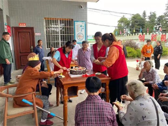 “祝你生日快乐,祝你生日快乐……”,志愿者为寿星们唱起了生日歌,为寿星们送上诚挚的祝福,祝愿她们能在邹岗村这个大家庭里开心快乐。大家一同吃蛋糕,一起话家常,场面温馨而和谐。