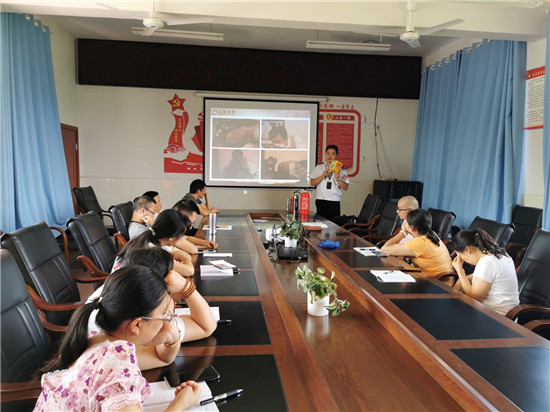 在培训过程中,大队宣传人员用一个个真实生动的火灾案例,深入浅出地讲述了消防安全的重要性,并从“落实安全责任,加强安全宣传,强化安全培训,提高应急能力”等四个方面进行了重点阐述。大队宣传人员还就油锅、汽车、电器等起火应如何扑救向老师们普及用电安全知识。随后,大队宣传人员详细介绍了灭火器的用途、种类以及常用灭火器、防烟面具和燃气报警器的观察使用等一系列消防安全知识,使参会老师感受到火灾的危害性,认识到防火与消防的重要性。