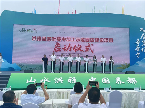 活动中,还举行了洪雅县茶叶集中加工示范园区项目开工仪式。据悉,该项目占地50354.46平方米,约75.53亩,建设内容含5栋中间一层钢架结构及两侧两层框架的生产厂房1栋,集茶叶展示展销、办公、住宿、餐饮为一体的综合大楼,总建筑面积30276.39㎡及配套基础设施,总投资约6000万元。