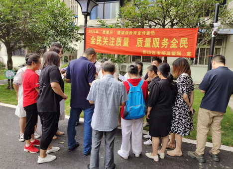 近日,彭山区市场监管局在城西社区开展了“质量月”宣传活动。活动围绕“深入实施质量提升行动 大力推进质量强国建设”主题,通过悬挂横幅、摆放展架、发放宣传资料及现场接受咨询等多种形式向过往群众宣传质量基本常识、消费品质量安全、《四川省质量促进条例》等内容。